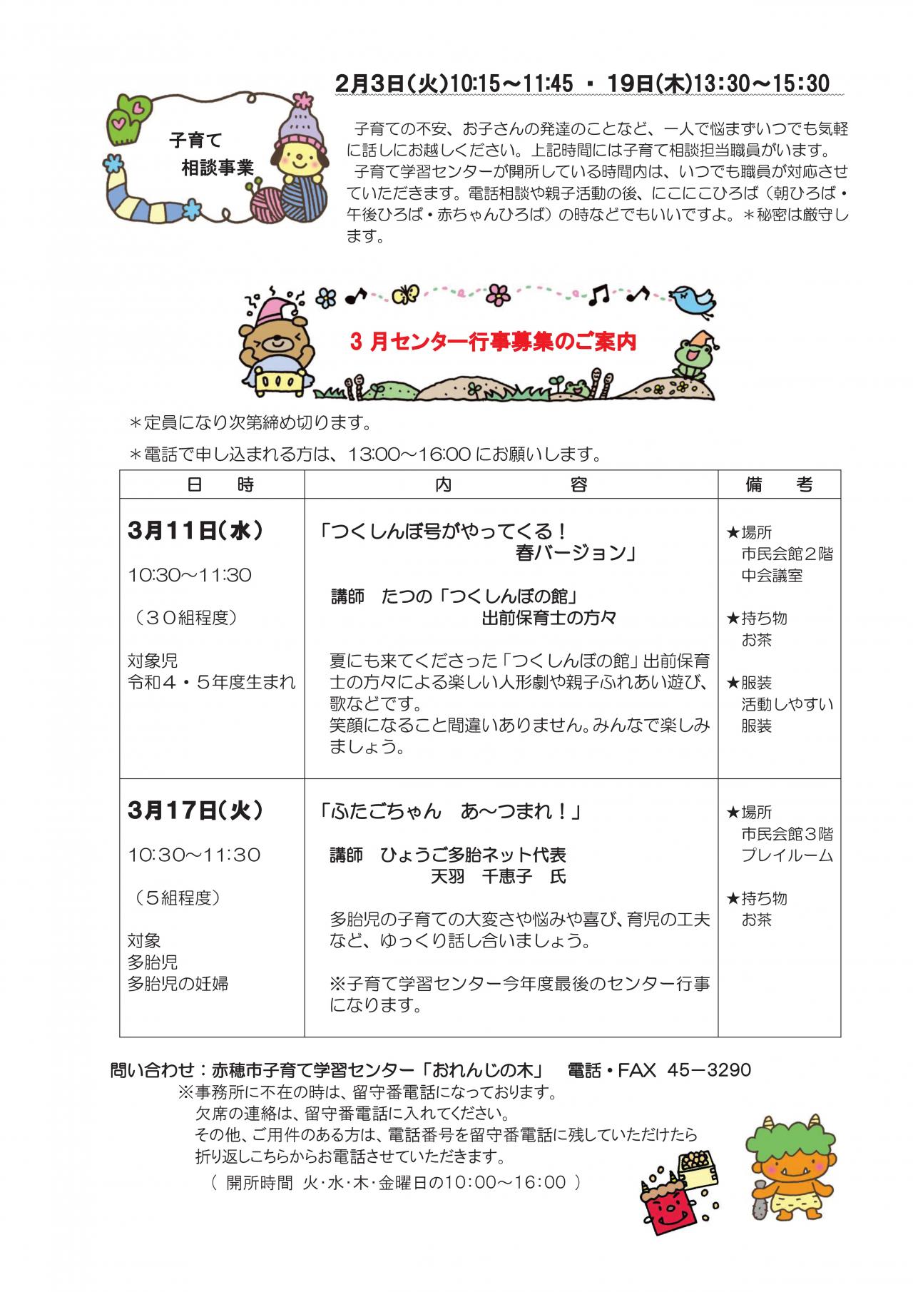 子育て通信「おれんじの木」では、子育て学習センターの活動予定やイベント情報などを掲載しています。